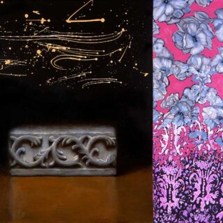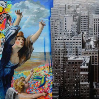 Regarding technique, my work exhibits the confrontation of two very different constructive systems: chiaroscuro, referring to painting by layers, and bold color, painting directly onto the canvas with a mix of colors.